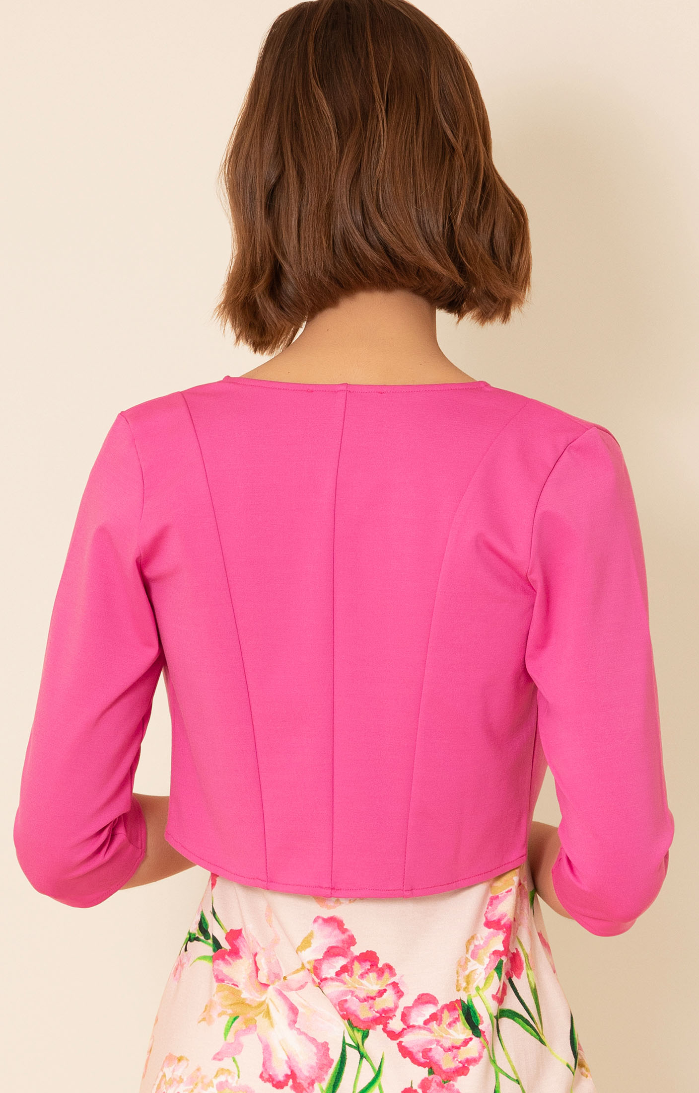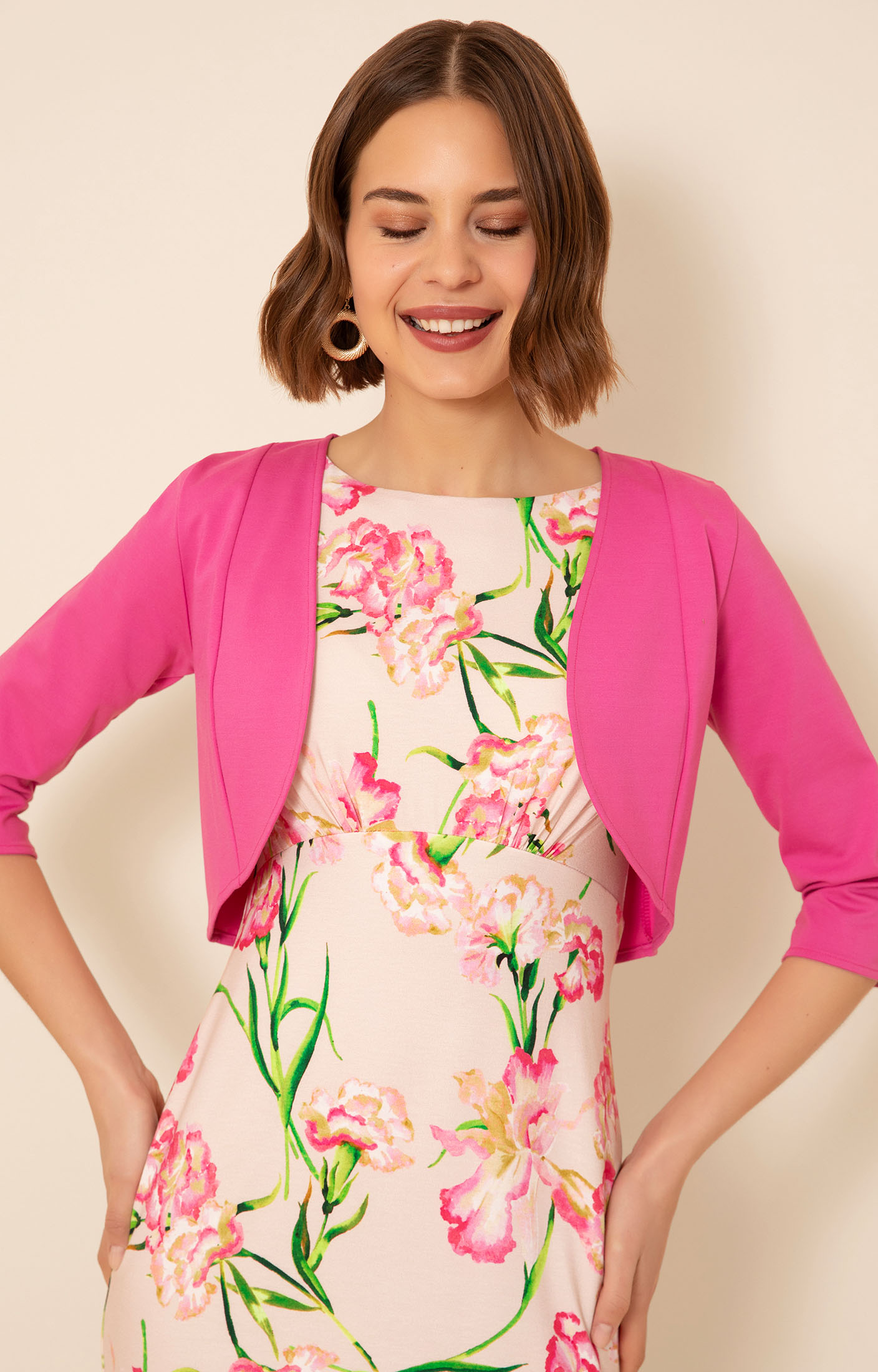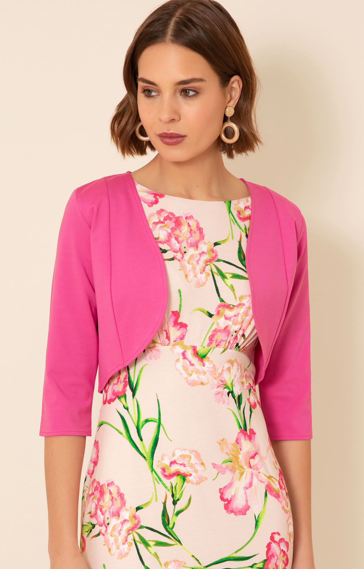 Elegant and easy to wear, our new Freya Bolero is the perfect finishing touch to your occasion look. Crafted in a soft yet heavyweight jersey, this classic cover-up offers just the right amount of structure with a clean, collarless cut and cropped silhouette.