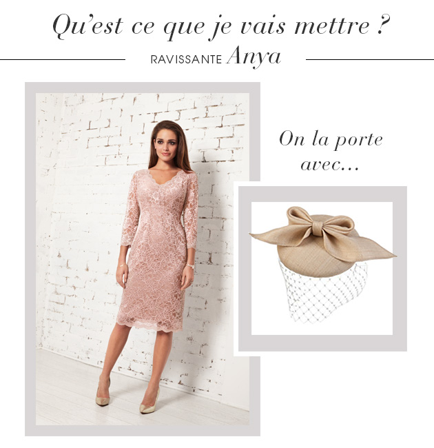 Dentelle, décolleté en V, longueur en dessous du genou et manches 3/4, voilà les atouts de la ravissante Anya. L'aspect légèrement satiné de la dentelle rose apporte une finition glamour à cette jolie robe. Portez la avec un chapeau rose blush assorti (comme le Veiled Wing Bowed Beret par Mich Dulce) pour un look Ascot instantané.