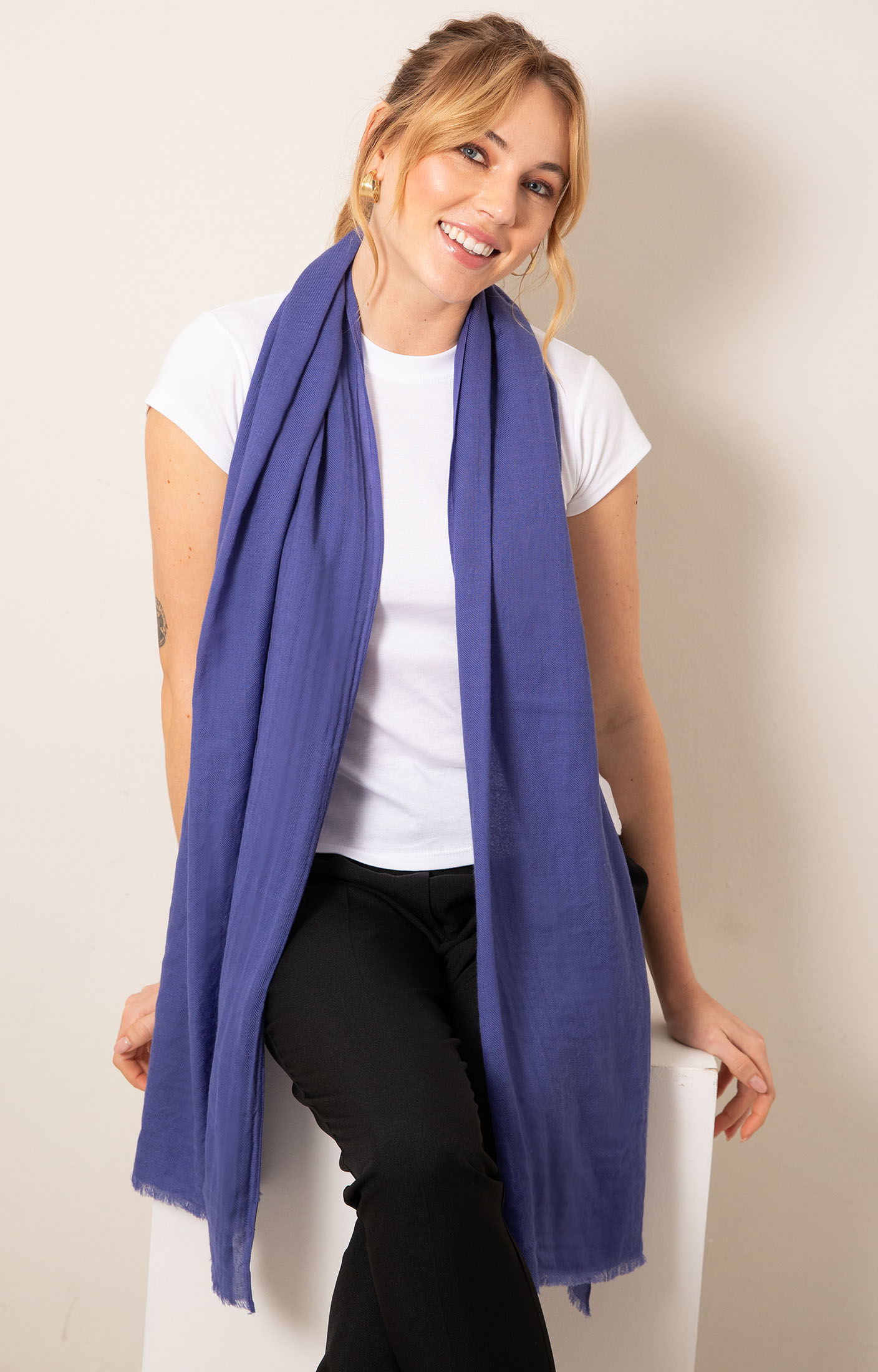 • Silk and wool blend scarf in a rich, dusk-inspired shade