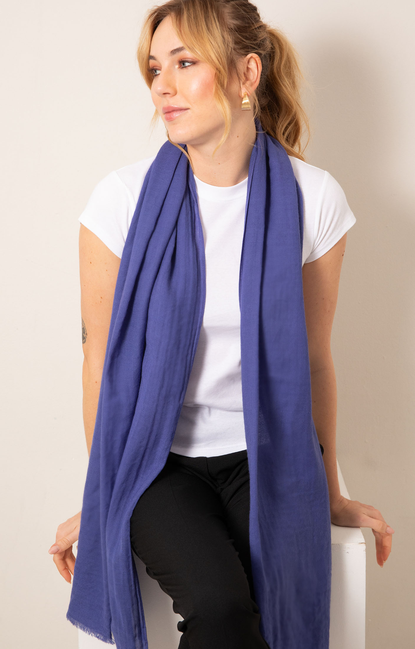 Embrace the quiet allure of twilight with the Aurielle Scarf in Future Dusk. Woven from a sumptuous blend of silk and wool, this lightweight layer brings a soft, breathable warmth and an effortlessly fluid drape.