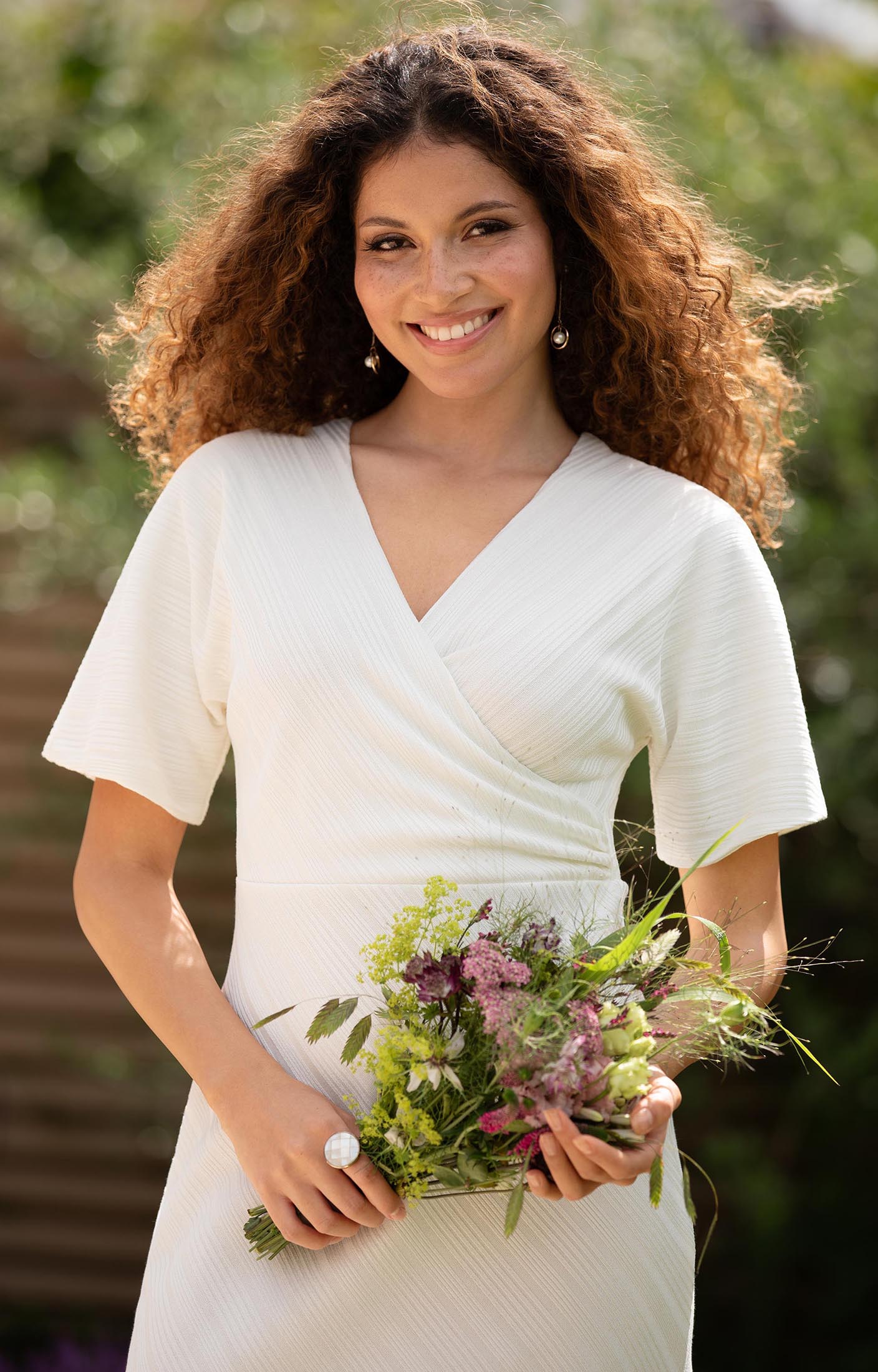 Modern elegance defines our Kayla Kimono Dress in Ivory. Crafted from a soft rib knit jersey with beautiful natural stretch, this flattering faux wrap design features a cross-over neckline, kimono-inspired sleeves and a bias-cut midi skirt. Lightweight, comfortable and irresistibly chic, it’s the perfect choice for relaxed celebrations, stylish do's or simply feeling beautiful every day.